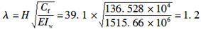 当λ=1.20时,位移系数ψu=8.07,结构顶点假想位移为:μT=ψuqH4/100EIw=8.07×2277.35×39.34/100×1515.69×106=0.289m;