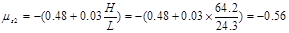 根据《建筑结构荷载规范》(GB 50009—2011)表7.2.1可知,地面粗糙度为B类,离地面高度64.2m处的风压高度变化系数由内插得:根据《高层建筑混凝土结构技术规程》(JGJ 3—2010)附录B第B.0.1条,建筑物平面形状为矩形时,风荷载体形系数为: