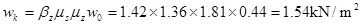 根据第4.2.1条规定,主体结构计算时,风荷载作用面积应取垂直于风向的最大投影面积,垂直于建筑物表面的单位面积风荷载标准值应按下式计算: