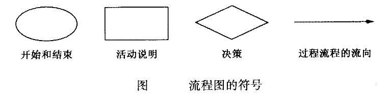 流程图由一系列容易识别的标志构成,一般使用的标志如图所示。 开始和结束 活动说明 决策 过程流程的流向