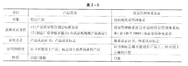 参见产品质量认证和质量管理体系认证对照表,如表2-1所示。