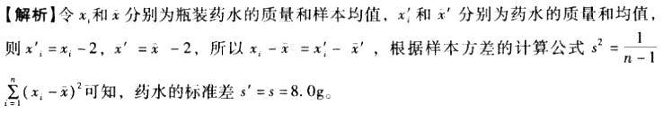 某种瓶装药水的样本标准差s=8g,若瓶子的质量均为2g,则药水的样本标准差为()。