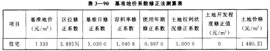 据前述基准地价系数修正法的公式,我们编制了基准地价系数修正法测算表(表3—88)。计算出估价对象的地价为: