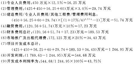 某开发商在一个中等城市以425万元的价格购买了一块写字楼用地50年的使用权。 该地块规划允许建筑面积为4 500 m2,有效面积系数为0.85。开发商通过市场研究了解到当 前该地区中档写字楼的年净租金收人为450元/m2,银行同意提供的贷款利率为15%的基础 利率上浮2个百分点,按季度计息,融资费用为贷款利息的10%。开发商的造价工程师估算 的中档写字楼的建造费用为1 000元/m2,专业人员费用为建造费用的12.5%,其他工程费为60万元,管理费用为土地费用、建造费用、专业人员费用和其他工程费之和的3.0%,市场推广及出租代理费为年净租金收入的20%,当前房地产的长期投资收益率为9.5%。项目开发周期为18个月,建设期为12个月,试通过计算开发成本利润率对该项目进行初步评估。