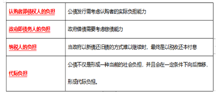 由上表可知,发行公债对认购者形成的经济负担称为债权人的负担。