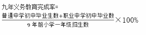 D(普通中学初中毕业生数+职业中学初中毕业生数)/9年前小学一年级招生数×100%