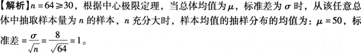 总体均值为50,标准差为8,从此总体中随机抽取容量为64的样本,则样本均值的抽样分布的均值和标准差分别为()。