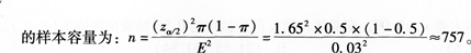 因为总体比例π未知,取π=0.5,而za/2=z0.1/2=1.65,E=0.03,所以应抽取