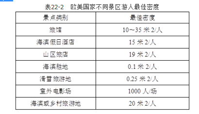 欧美国家不同景区游人最佳密度如表22-2所示。