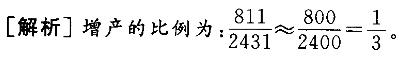 某厂去年生产服装2431件,今年多生产服装811件,则增产的比例约为( )。
