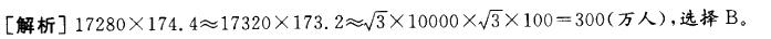 2006年,某地区人均年收入为17280元,人口总数174. 4万人。则2006年该地区的总收入约为( )万元。
