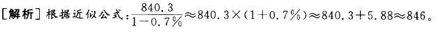 2008年,江苏省完成进口加工贸易840. 3亿美元,比上一年减少了0. 7%,那么江苏省2007年完成进口加工贸易额应该为多少亿美元?( )