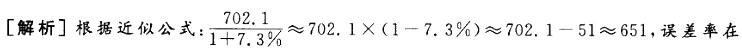 (7.3%)2≈0.5%左右,700的0.5%大概也就是3.5左右,那么真实值应该比651大致大3.5,结合选项,选择C。