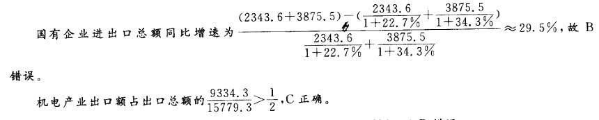 高新技术产业为顺差,故A错误。船舶出口增长率高于汽车零部件出口增长率,但增长量无法判断,故D错误。