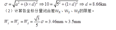 2.计算该三边同步环的平均边长(结果取至0.01km)及各坐标分量闭合差Wx、Wy、Wz的限差(结果取至0.1mm)。
