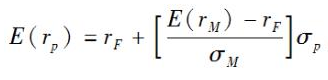 其中,E(rβ)为有效组合P的期望收益率;QP为有效组合P的标准;E(rm)为市场组合M的期望收益率:σM为市场组合m的标准差:rf为无风险证券收益率