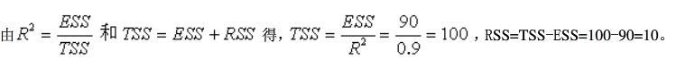 根据某地区2005-2015年农作物种植面积(X)与农作物产值(Y),可以建立一元线性回归模型,估计结果得到判定系数R=0.9,回归平方和ESS=90,则回归模型的残差平方和RSS为( )。