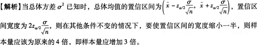 在其他条件不变的情况下,当总体方差σ2已知时,要使总体均值的置信区间的宽度缩小一半,样本量应增加( )。