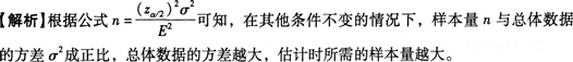 在其他条件不变的情况下,总体数据的方差越大,估计时所需的样本量( )。