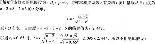 设有4组容量相同的样本数据,即n=8,相关系数分别为:r1=0.65,r2=0.74,r3=0.89,r4=0.92,若取显著性水平0/=0.05进行显著性检验,哪一个相关系数在统计上是不显著的()