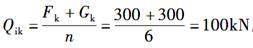 桩数6根的桩基础,若作用于承台顶面的轴心竖向力Fk=300kN,承台及上覆土自重Gk=300kN,则作用于任一单桩的竖向力Qik为( )kN。