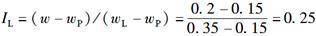 某黏性土样的天然含水量w为20%,液限W?为35%,塑限wp为15%,其液性指数IL为( )