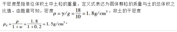 某土样的天然重度γ=18kN/m3,含水量w=20%,则土的干密度ρd为( )。