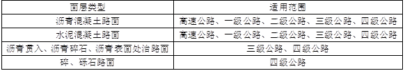路面面层类型及适用范围如表1-1-1所示。 表1-1-1 路面面层类型及适用范围表