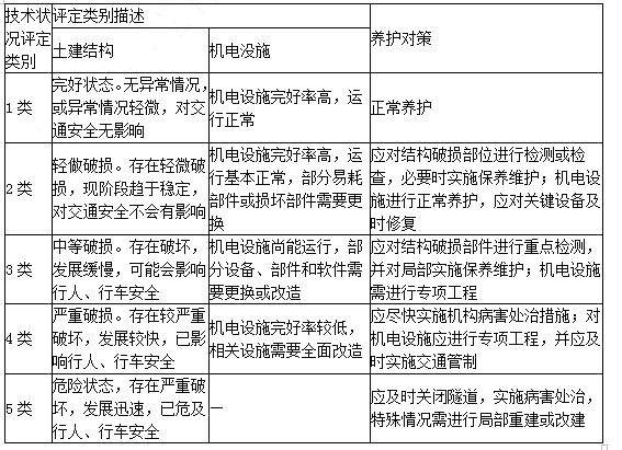 本题考查的是公路隧道技术状况评定。 公路隧道总体技术状况评定类别 表6.2.3