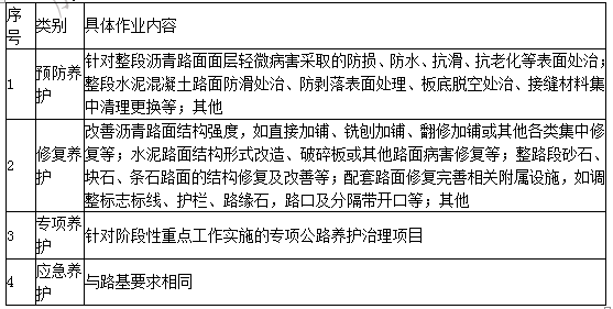 本题考查的是路面养护。 公路养护工程分类细目 表6.4.1