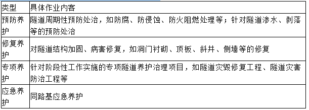 本题考查的是隧道养护。 隧道养护工程作业内容 表6.6.3