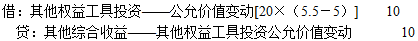 2019年12月31日,累计确认的其他综合收益=20×(4.75-5)=-5(万元)。