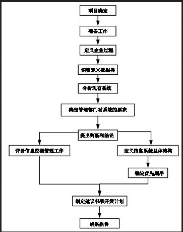 A定义企业过程,识别定义数据类,确定管理部门对系统的要求,分析现有系统