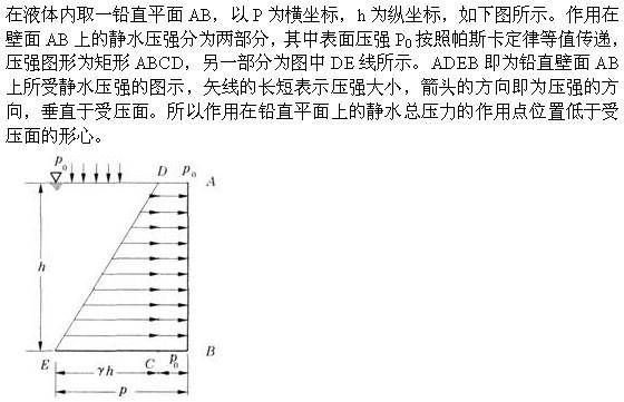 作用在铅直平面上的静水总压力的作用点位置为( )。