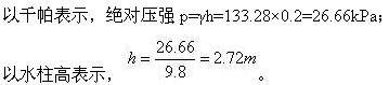 测得液体某点的绝对压强为200mm水银柱高,问:若以水柱高表示为( )。