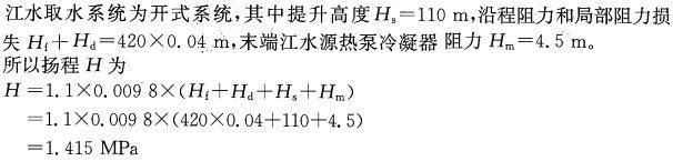 某江水源热泵系统直接使用江水,江水取水点与用水点高度差为110m,供水水管长度为420m。单位长度的江水管道的平均沿程阻力与局部阻力损失之和为0.04m,江水源热泵换热器的阻力为4.5m。江水源热泵机组使用后的回水经过城市雨水管道回流到江中,不考虑取水及回水的头部损失,该江水源热泵的江水取水泵扬程应为( )。