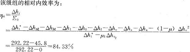 假设级组的μ0=μ1=0,级组的理想焓降为292.22kj/kg,其喷嘴损失、动叶损失、叶高损失、扇形损失、叶轮摩擦损失、部分进汽损失、漏气损失和湿气损失的总和为45.8kj/kg,则该级组的相对内效率为( )。