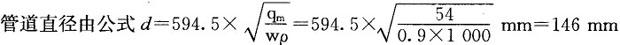 热水质量流量为54t/h,经济流速为0.9m/s,则输送工质管道直径为( )。