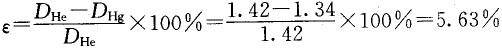 采用He及Hg置换法测定煤的孔隙率。用Hg作为置换物测得的煤的密度为1.34kg/m3,用He作为置换物测得的煤的密度为1.42kg/m3,则煤的孔隙率为( )。