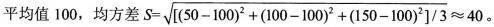 雨量系列(单位:mm)为50、100、150,其均方差为( )。