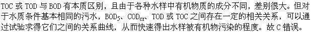 各种水质之间TOTOD与BOD存在固定的相关关系