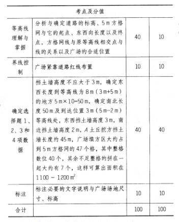 2.要求广场紧靠道路红线布置。平面为正方形,面积最大,标高为5.00m,广场与场地之间的高差采用挡土墙处理,挡土墙高度不应大于3m。