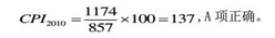 如果我国一个普通家庭在2000年每个月购买一组商品的费用为857元,2010年购买同样一组商品的费用是1174元,那么我国2010年消费价格指数就为()。