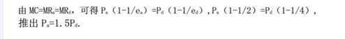 一家影院垄断了一部电影的首映权,它知道成人和儿童对该片的需求弹性分别是2和4,如果实施价格歧视,那么利润最大化的成人票价为()。