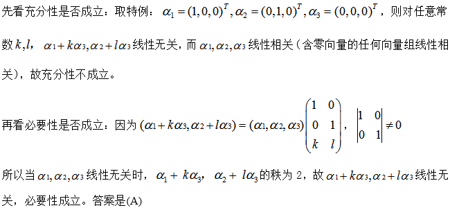 设a1,a2,a3均为3维向量,则对任意常数k,l,向量组