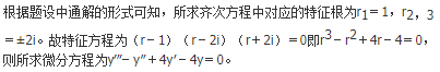 在下列微分方程中,以y=C1ex+C2cos2x+C3sin2x(C1,C2,C3为任意常数)为通解的是( )。