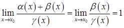因x→x0时,α(x)+β(x)~β(x),β(x)~γ(x)。故