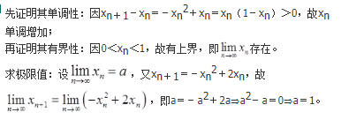设0<xn<1,n=1,2,…,且有xn+1=-xn^2+2xn,则( )。