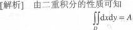 A为区域D的面积.由于D为x2+y2≤4表示圆域,半径为2,因此A=π×22=4π,所以选A.