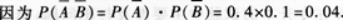 事件 A,B相互独立, A,B发生的概率分别为0.6,0.9,则 A,B都不发生的概率为().